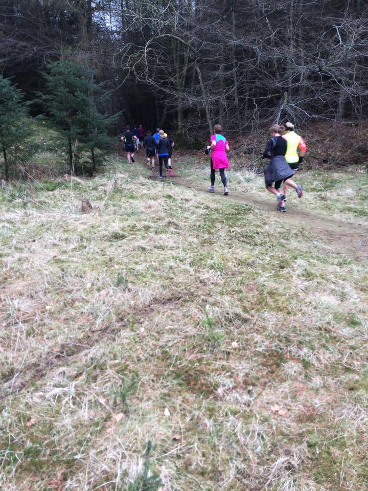 Occasionally the club organise guest runs where the MAC troops gather some place different to go for a meander through pastures new. This one was be through Bannockburn way, and running to the North Third reservoir and cliffs with our quite frankly bonkers guide Davie Armour. A good 20 or so of us made it through on what I can only describe as a “fresh” morning. We were prewarned that there was a lot of uphill on this run, some of it would have to be walked and that Tommy would attempt a sprint finish. The first section was through the Bannockburn heritage grounds and up a wee road towards the forest. The climbing was starting almost immediately but was gradual. Into the forests and the underfoot conditions were ideal for running on. It was a nice steady but gentle pace with us regrouping along the way.
