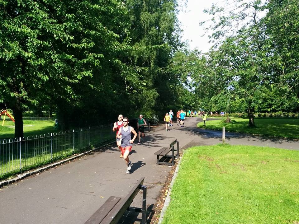 So onto Saturday. Victoria parkrun. Hadn’t done it before but heard it was fast. After a starting straight from the park gates it was 3 loops of the park before turning off for the finish. About 20 MAC athletes made the trip to join the field of about 250 odd athletes. I had one simple aim. I wanted to beat as many MAC runners as possible as it was the (hip hop beats, trumpets and a wonky stylophone) latest race in the 2015 Motherwell Athletics Club Road Racers Championship and League. In my Division Coach John was training the best he has in years, and Jim White was coming back into form. I knew that to be first in my division I would probably have to go sub 19 for only the third time. I was quite confident after the week I had had though, but translating training form into a race is no guarantee. I had to race and race right. When we started I went off fast. The aim was to get ahead of them and stay there. Simple tactics (??). Round the pond and down to the bottom corner where you climb up to the park along a short incline. At this point I had a wee look behind. I could see John and Marcus, but I was comfortably ahead if i could maintain the pace. Chris, Craig and Nick were well ahead of me battling at the front but as we finished lap 1 I was in around 14th place and happy with how it was going. With the tight turns and trees the GPS was giving me a load of hopeless jargon so it was to be eyes off the Watch and simple racing.