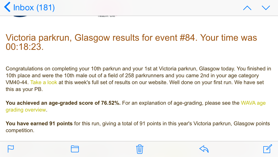 Edited to add, just saw my runbritain handicap is at a new low of 4.4. Ooooft:)