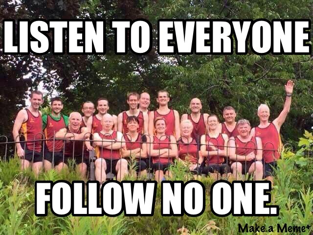 The less said about last nights Fartlek session the better. Group too fast. Legs too heavy from Sunday. Back very sore. It was totally flooded and a mud bath. My head was in the wrong place. Got a row from Jim White afterwards as I coaxed him into the group by telling him to be brave. This is for him but feel free to listen and share the “wisdom.”