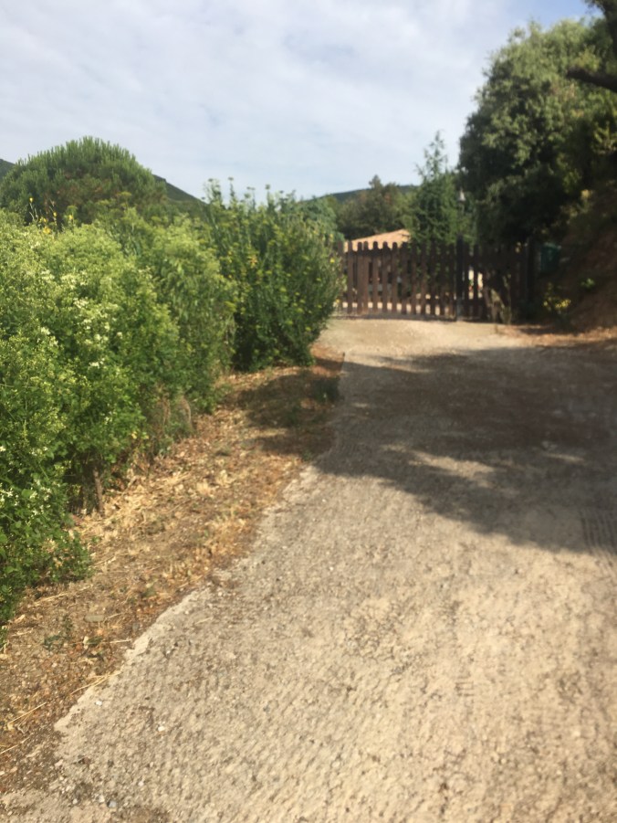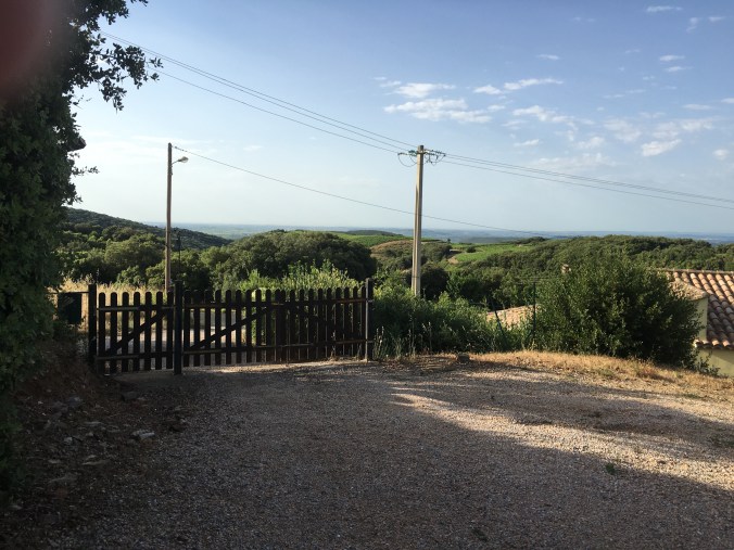 The gates at the bottom of the drive at the Villa. Downhill, hurrah!
