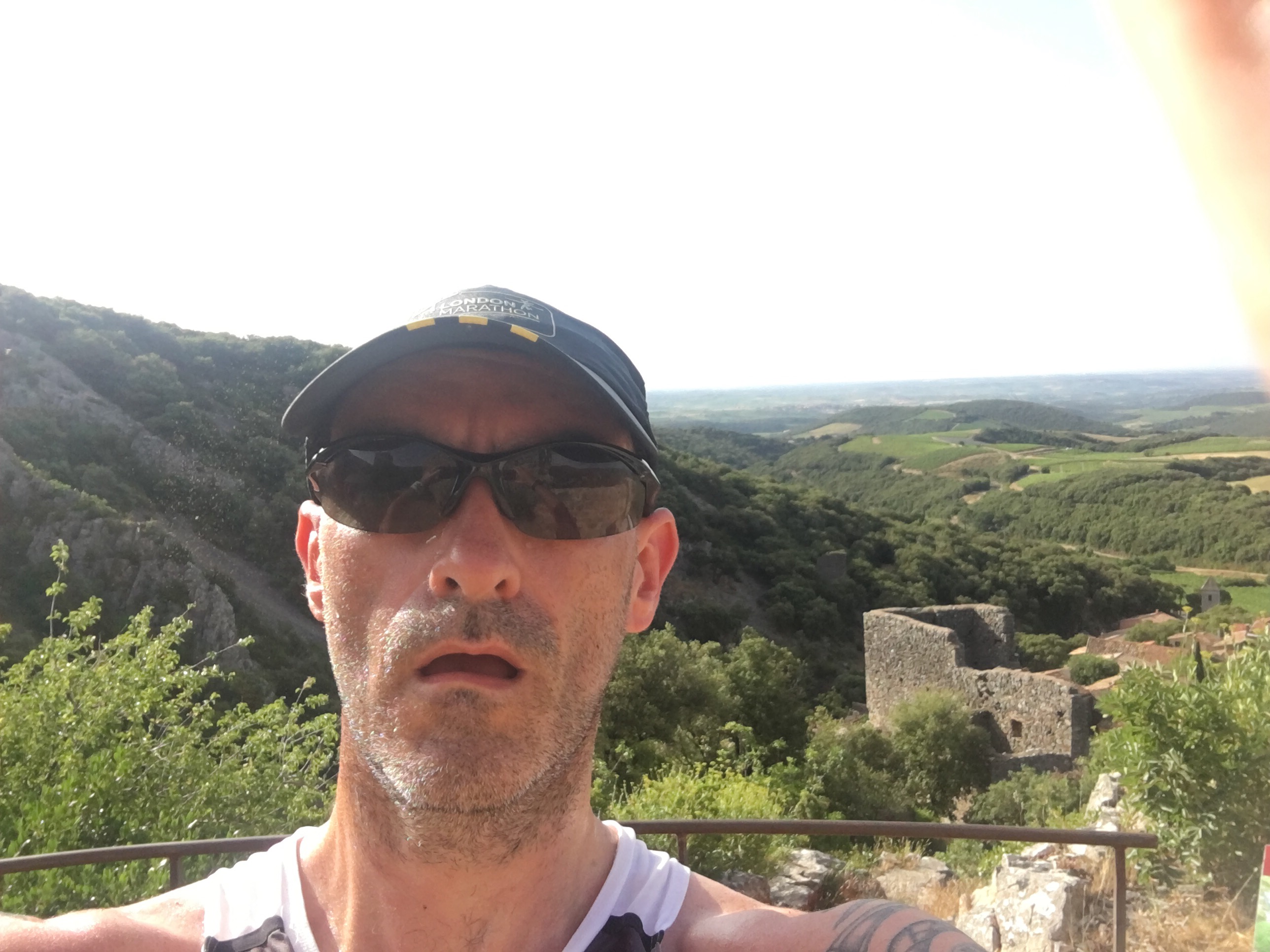 Aye ok. Not quite a revolution but I am always posting about racing. This is different. No jokes, gags, irritation or self deprecation in this blog. Today I simply got my phone, went out in 90 degree heat while everyone else was still sleeping and jogged, yes jogged, starting and stopping and taking pictures on a run that apparently had me at an altitude of 1400 ft. A slog but great fun. Mojo back? Maybe. Right good fun, glorious views, no one else about. Feel free to read on and see the run. Welcome to Cabrerolles, France.