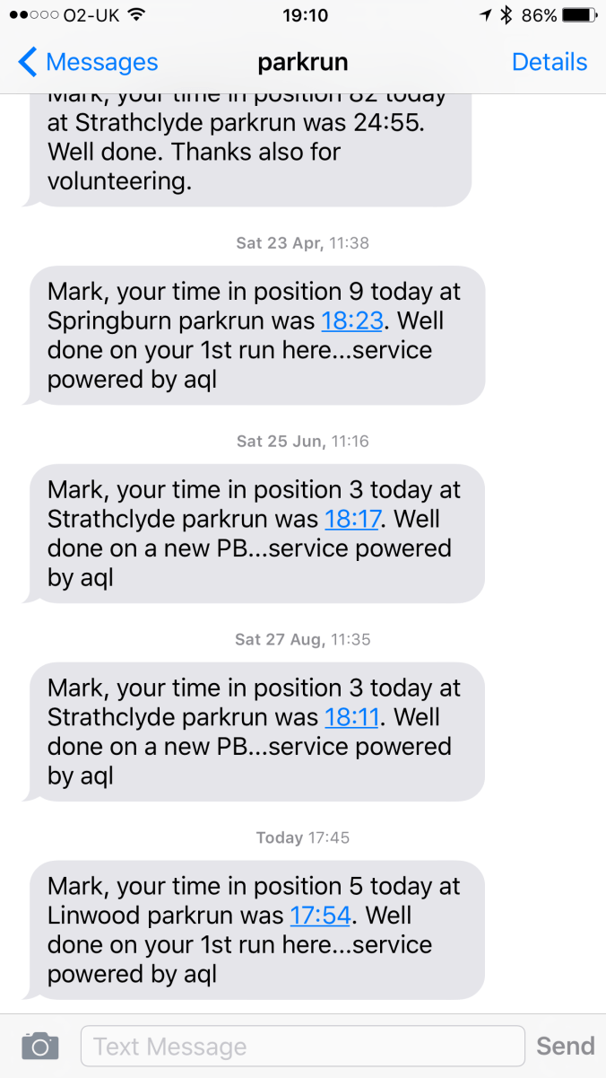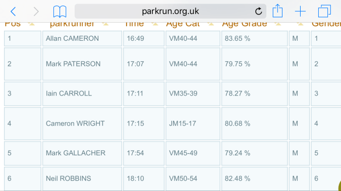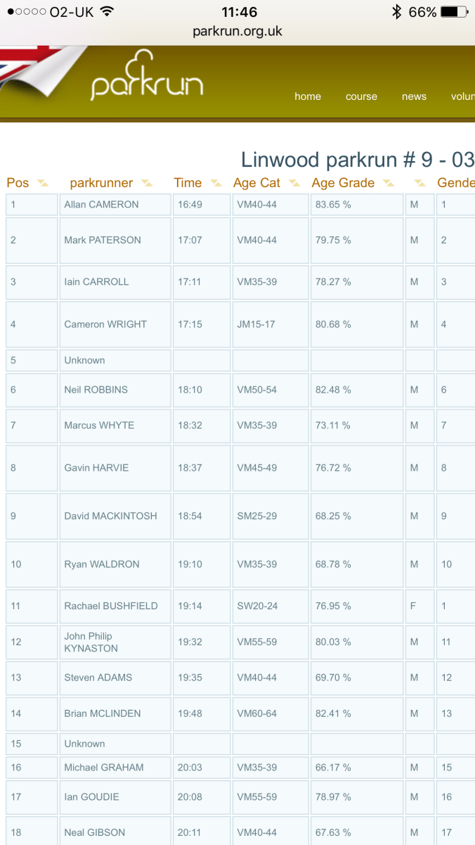 Now you are having a giraffe. A big giraffe. With a funny face. And stilts. My sub 18 not existing. My MAC club champ Division 1 silver null and void. Karma biting my bum for dancing about on the finish line . I admit I’m a drama queen. Over reacting. Ready to chuck it. To be fair Linwood parkrun sorted it for me as quickly as they could. And I was reinstated.
