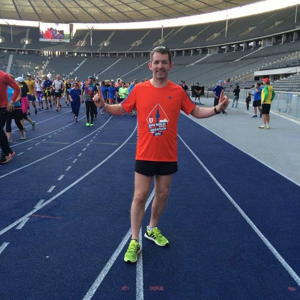 “Missed 5/6 weeks running on the lead up to Berlin due to hip/groin pain. Managed to run 2 miles the Tuesday before I flew out so made to do the Breakfast Run on the Saturday morning. Not fast (10:30 mile pace) but perfect for the missus who was running the following day and I did get to run into the Olympic Stadium for a lap of the track which gave me a great buzz.