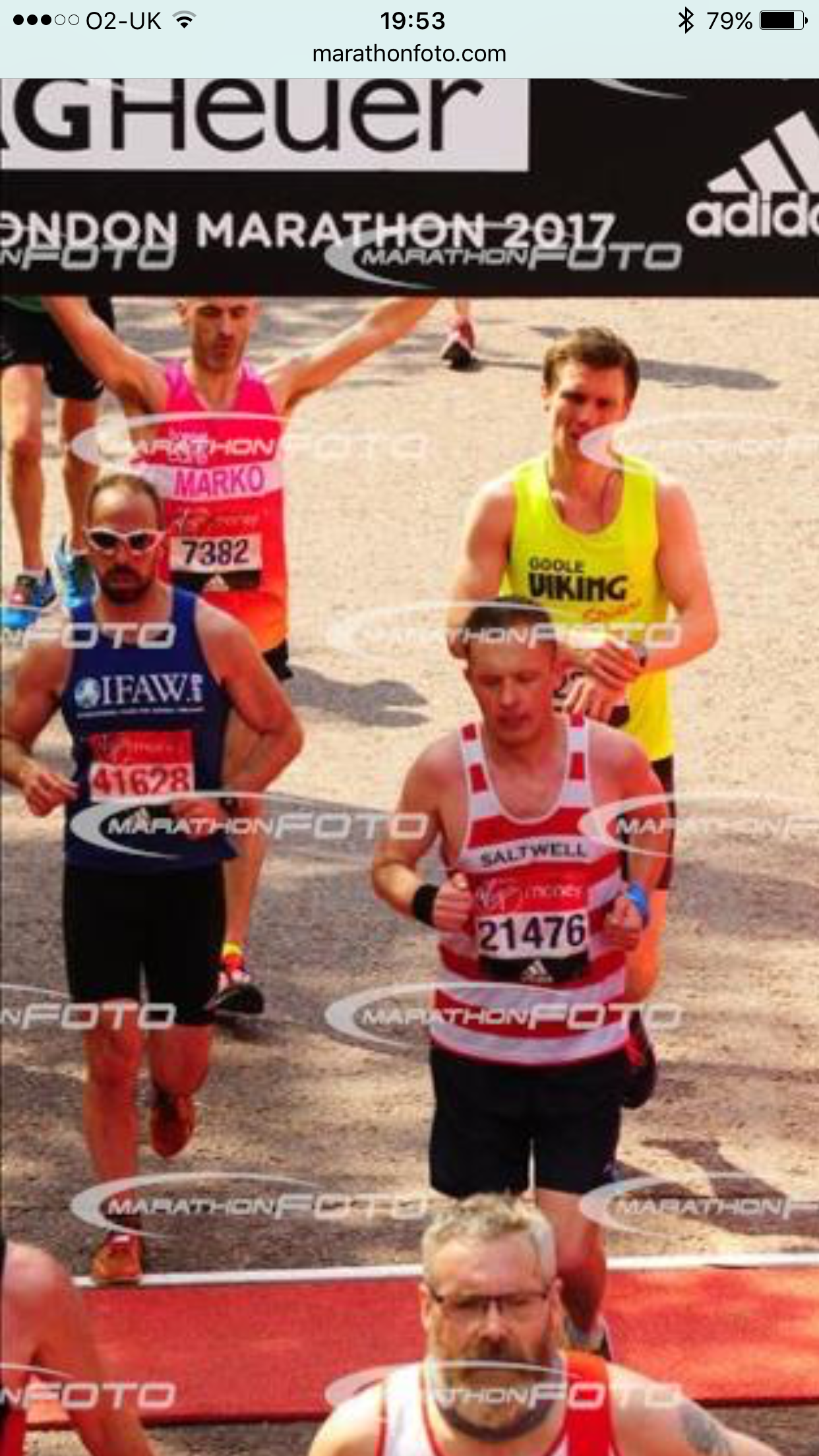 I jogged at crawling pace. But I got there. I finished. Time had slipped to 3.23.49, but I was a marathon runner!!