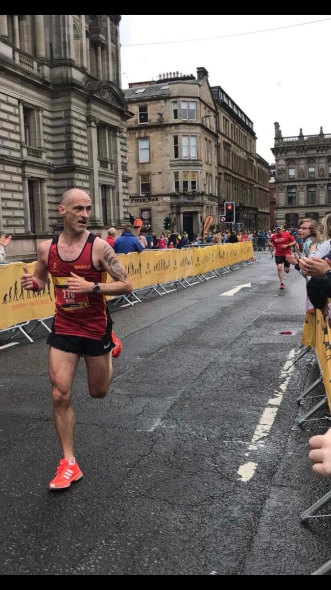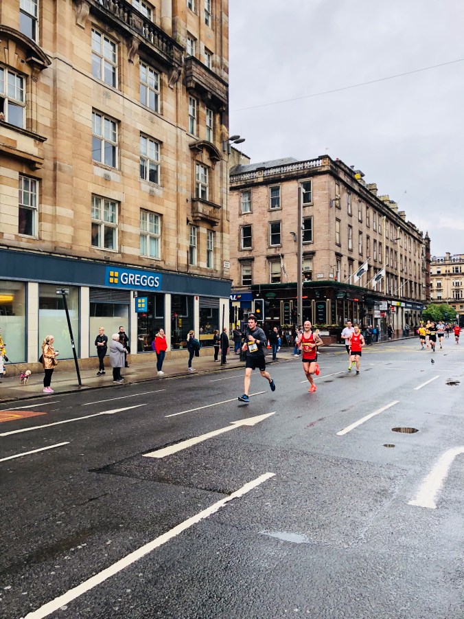 It was nice running through the Centre, up past Central station, along Buchanan Street then towards George Square at around the 5k mark. I had a huge smile on my face seeing Elaine and my boys which gave me a right boost as I went past them and on my way. Over to the side and a smile and a wave, in previous years I would have been po-faced and focussed.