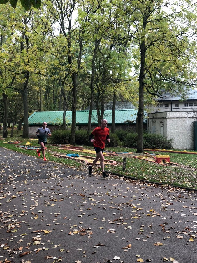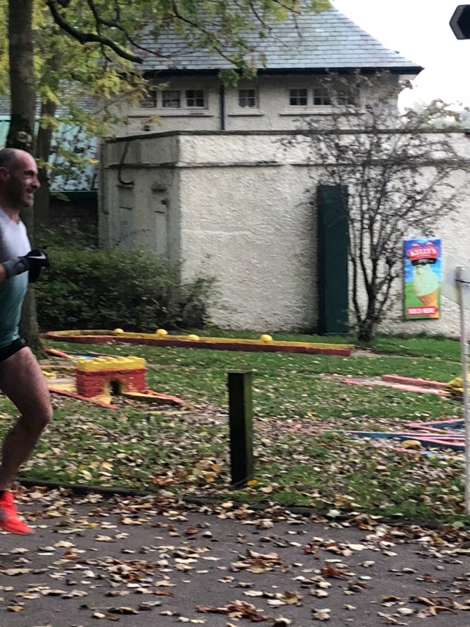 My knowledge of nutrition is appalling. I eat bad enough when training hard and get away with it, but when injured or busy at work the weight piles on. I have no excuses and no one at all to blame but myself. When going to work so early and getting home too late to go to club training I am fitting in my own sessions, then making sure I have family time, so its food convenience, I don’t have time to prepare things not would know where to start. Any experts out there? Give me a shout. So basically with 3 months with little running my weight had crept up. I was half a stone over where I would be as standard. I was going to Blackpool where it would be fast food and crap all week. Fat arse Marko was back, no doubt about it and I was dreading how it was to be by the time I came home. I had entered the Blackpool Autumn Breaker 10k earlier in the year when I was in good shape but thankfully after last weeks trail 10k I knew I would be able to get round. Another low mileage week due to work but simple aim for me, after doing last week in just under 42 the aim this week was to try and get close to a sub 40. No stressing though. I’d looked at last years results and saw that around 39 minutes would be top 3 for my age group so was something to aim for, albeit a bit ambitious. I was looking forward to it as I had run in Stanley Park before so was excited about racing in it in this sell out race. Had a few beers the night before as well as a massive chocolate cake ( OK, I know) but it was just going to be as steady as I could manage. Took the club vest to represent as it’s always worth a few extra seconds and we were off. It started on the running track and we did two laps before exiting which straight away had a bit of mixing up as I was near the front and we were lapping people on the track and having to zig zag in and out of them in the first 800m of the race…. The top 20 or so were away but I stuck to my task as we exited the park and ran round the perimeter, running just under 4 minute ks for as long as I could. We were already going into groups this early on and I was in a group being led by eventual female winner Bianca Pedersen. I wasn’t running comfortably but was hanging on the best I could as we went round past the pond over bridge and back out the park, then back in through the trails and back to the track where we would finish the first loop. of the two loop race. The watch had went a bit haywire through the trees and on the winding paths so I knew the splits weren’t going to be accurate but through 5k in 19.59 was spot on, though I was sure with the markers I probably had about 10-15 seconds of a buffer.