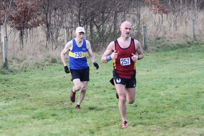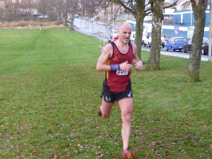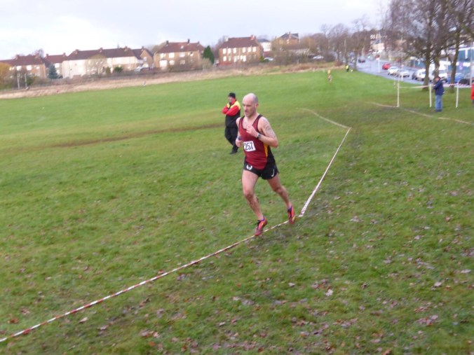 I’d like to tell you it finished in a blaze of glory, smashing the field as I sprinted to glory in that most prestigious of races, one in the echelons of Athletic prowess, the Lanarkshire X Country Championships. Now I could but it would be a total lie. It was one of those days where there’s nothing really there. Off fast on the 3 lap route and knowing on the first wee climb that the legs are too heavy for it and it’s a case of doing the best that you can do on the day rather than how you would have liked to have done. First lap was ok, second lap 3 opponents went past me, the last lap I sat in and ran on my own although I extended the gap on those behind I never challenged those in front which I’m a bit disappointed in and a 33rd place. 9th MAC finisher and showing the form that will no doubt having me demoted from League 1 in the club champs next year since there’s another 15 to 20 that would have been ahead of me if they had run. Old age is certainly catching up with me and although it wasn’t my worst ever run ever it certainly wasn’t my best either. Whilst I am not great on the roads or the track, Cross Country is certainly my nadir. But I’m still glad to have done it. Nationals maybe in February, but for this year over and out. Thanks to Joe Hoolaghan and Cameron Newell for the pics below.