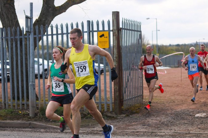 Thats was another daft thing, but it ended up well, so maybe today would be the same. A second outing for Billy’s Boots (TM Big Bad Brian fae Airdrie) looking resplendently shiny and we were raring to go, a throng of baldies amongst a sea of luxurious locks. Over 700 in the race including Commonwealth medallist Robbie Simpson and we were off. I felt fine, the warm up had worked, no pain and running freely so would be no excuses today unless the legs went, everything else felt fine. Round the track one and a half times then out and onto the roads.