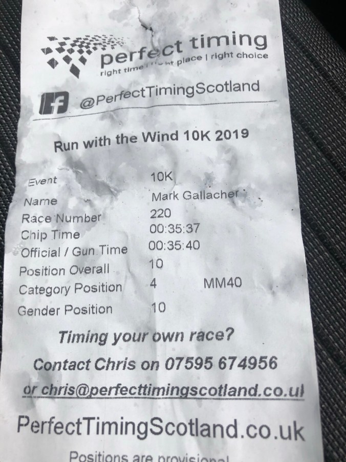 Strathaven 10k is a funny race, a 10k with a net downhill exposed to the elements with its own weather system. If you are a good descender it can really be a great, fast race. If you are a shitebag like me and as comfortable as Humpty Dumpty going backwards on a sledge then not so much, but it’s enjoyable, a challenging one where if you pace it wrong you are in big soapy bubble. Talking of pacing I was back at Strathy parkrun pacing 24 minutes the day before. Through in 23.58 which is fine but a bizarre one where absolutely no one ran with me the whole time until the last 50 metres.
