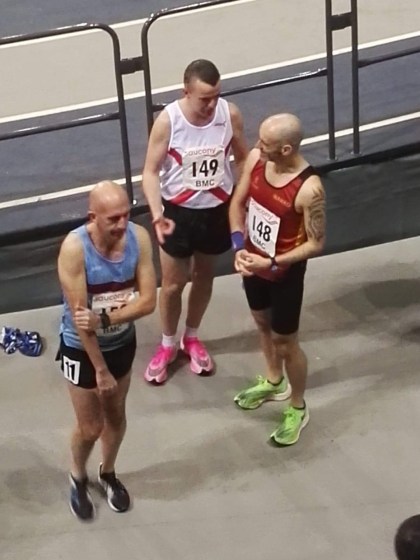 Running wise the weekend was brilliant. It started off on Friday night with one of my favourite events of the year, the Scottish Indoor 3000m at the Emirates at the GAA BMC Miler meet. This one sells out real quick, and I was fortunate to get a space. Last year this had kick started my season and year when I won my heat in a PB of 10.18, it changed a lot for me and gave me so much belief and shaped 2019 for me. Don’t get me wrong, I had dreaded it all week. I get nervous and was worried that my  miles recently at the expense of speed work would see me spat out the back of what was a great field. Some right good runners in there, all who would be more than capable of leaving me in their wake, but the difference with me now is I knew I had worked hard last year to get into that field. Yes I might be last but for the first time I felt I deserved to be there. Last year a 10.30 pacer, this time 9.45, sharper than my PB but I could only do my best (and hope that someone else didn’t :)). The chat was great with running friends old and new, we were all nervous you know, all not knowing what to expect. The inter club camaraderie was immense and really put me at ease, though I think me and Robbo from Ayr must have bored Big Ross in the pic below.