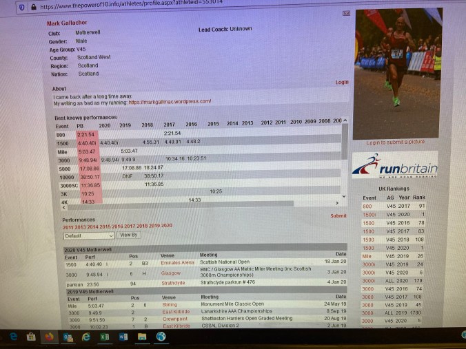 Addendum: For the first time ever I am ranked no 1 in Britain for my age group for 1500m. Ok when you click on it I’m the only one in my age group to do it so far this year but I won’t tell anyone if you won’t 😂