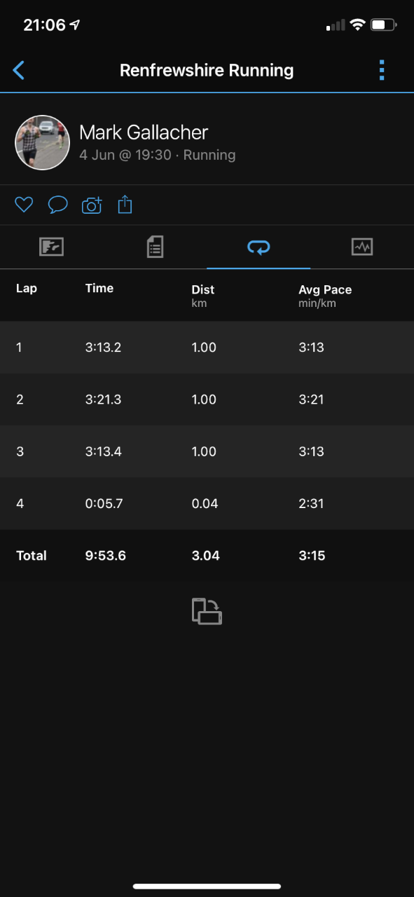 It’s been a funny time through lockdown and beyond with changing clubs and just so many other things changing. People I had thought were good friends have just dropped/ cancelled me without a word which is their prerogative but I have been fortunate enough to have made other friends who are there and celebrate the good times with you when they happen but are also there to give the kick up the arse and advice when it’s needed as well. Hats off to wee Forbesy here, watched the race and knew where I had gone wrong, knew what I needed to do, a wee chat to another of his ex International friends and a set of sessions were devised for me to try and avoid the switch off and lapses mid race. These weren’t easy, 30 x 200 at 3k pace with 200 recovery at 8 in the morning was a belter, but really appreciated and I brought these sessions in. A wee road trip holiday with the family, and despite eating terribly (but enjoyably) and having a couple of pints every day for over a week and a half I was making sure I kept the training up too. Fathers Day 9 am and booked into Ellesmere Port sport village track for 5 x 150(150)300(300)600(600).