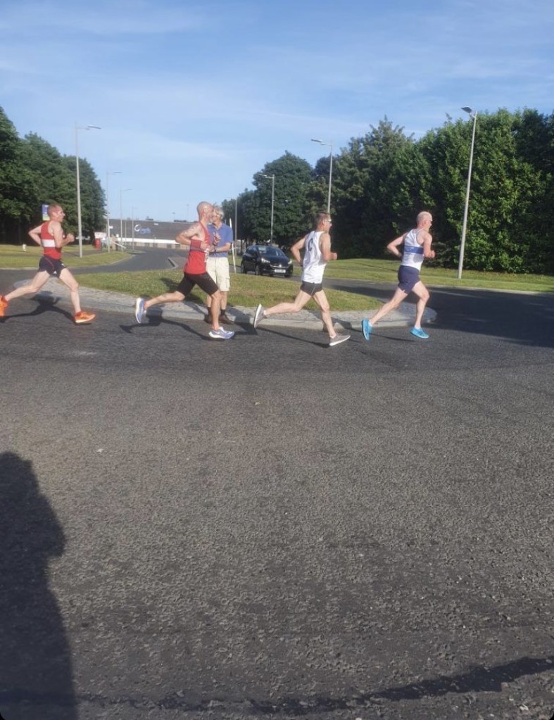 My last blog seen me on a major high after a 5k PB, a sub 17. My confidence so high going into the GAA miler meet 3000m that I had even been daft enough to throw my name into the hat for the forthcoming Masters inter counties to try and get my first international vest since 1989. Bonkers I know, but you do sometimes have to stretch outside your comfort zone. I knew to be considered I would have to run a PB to even get in their thoughts, but I did believe I could run under 9.45 and towards 9.40. It would be too painful to go through this step by step, you can guess by now it didn’t quite go to plan. My head played up on discovering the pacer was to be doing 9.30 pace and I decided to run my own race. First k where I wanted to be in 3.13 but I don’t know what happened, the next I was through in 3.21 and a group was away from me. I somehow had dozed off, lost concentration, or maybe just didn’t have the legs, I don’t know, but I was so far behind. I worked hard over the next few laps to catch some of the field up with a last k of 3.13 and an extra 5 seconds for racing line luck (I was awful again) and finished in third in 9.54.