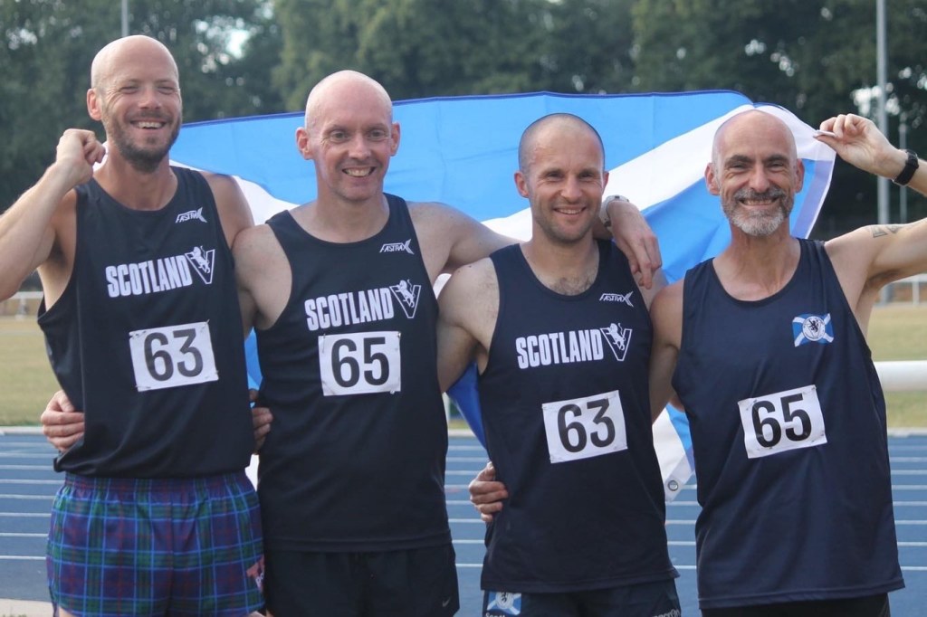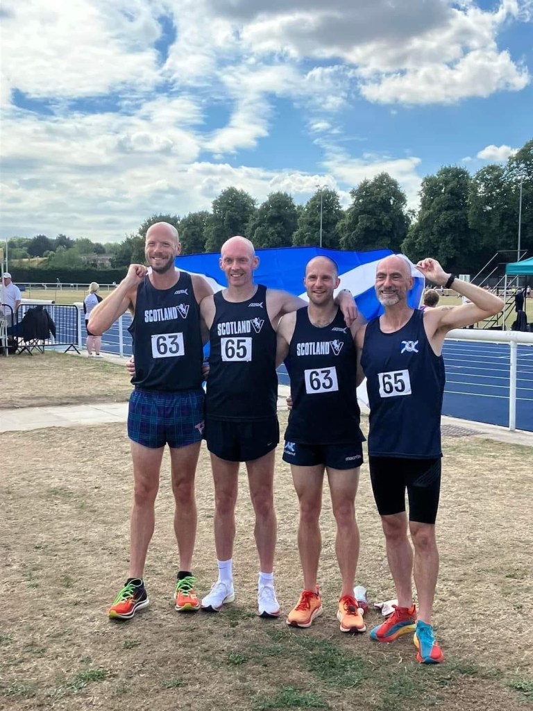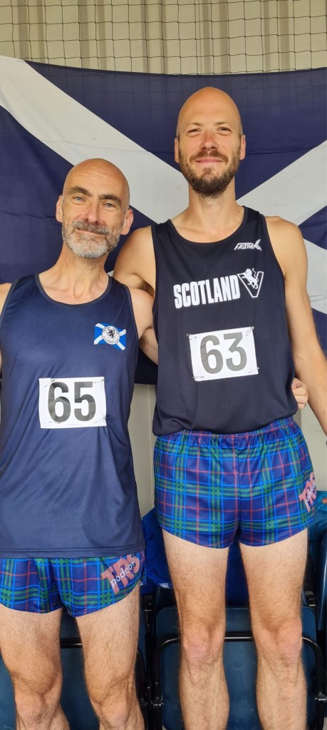 Away from myself this was the theme of the day. Not just the Scottish athletes but everyone out there proud to be representing. Giving everything. Total effort. PBs were flying, tactical races executed, and in the case of Scotland’s Yvonne Crilly a world record (W60 800m) smashed. Absolutely brilliant and a joy to watch. The look on other teams faces when we were getting pictures taken while a piper played “Scotland the Brave” will live with me for a long time. Thanks to all my team for making me feel welcome and giving me a brilliant day. A few pics here.
