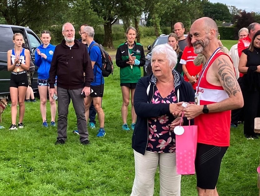 Really chuffed with that. A last 1000m in 3.06 after averaging in the 3.30s before that. Behind me Yvonne had broken the course record in a big PB of 17.16 and Millie had run a PB of 17.27. Brilliant stuff. Like Sunday, once you get that fire in your belly to race it is so rewarding and enjoyable, it’s what we train for. The unforgettable fire. Was fortunate to get the M50 prize and despite the photographers attempts to make me look as shifty as possible I left really positive with the race and my performance.