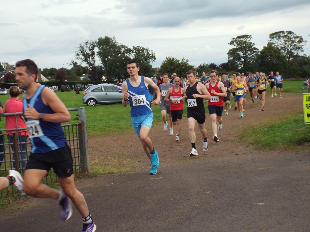 My club has a summer club championship and I wanted to try and integrate a bit more and take part in more races. I’m not great at this integration malarkey and even though I have been banging in some good results over the last year, and have won a few medals, I still feel a lot like the new guy from Motherwell, nearly two years on. All my fault of course but its hard for us oldies sometimes. Anyway entered Kilmaurs 5k as this was on the championship list.Was a great turn out last year of about 30 red and whites or so, this will help. Except entries closed and hardly anyone from the club had entered. On the night only 4 of us turned up, Vet superstar Erica, myself, fellow Vet Iain and his daughter Millie whose back I had had a good view of as she ran away from me at Shettleston 10k. She has had a brilliant season and despite still being in the 15-17 age group already had a sub 36 10k and 17.30s 5k to her name. A big talent with a big future. The conditions on the night were pretty perfect and I had been warned that it wasn’t a course for PBs as the general gist was 3.5k of a climb, a k downhill then half a k flat to the finish finishing on an ash track. Was actually a really good atmosphere there and I was being sociable, a great community feel. With my weekend races the plan was for a good steady pace to tempo as club champ points weren’t under threat anyway, that’s if it was still a club champ race (where was everyone? Secret race? Secret meeting?) We started on the “track” then out the park, back into the park, round tight turns, up some steps and up a hill. And this just in the first k. This was bonkers but cracking fun.
