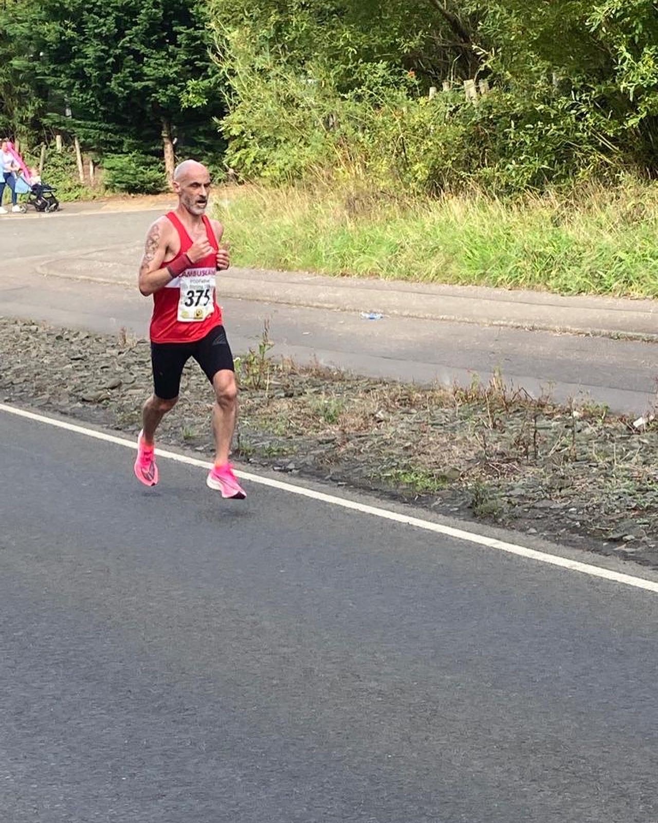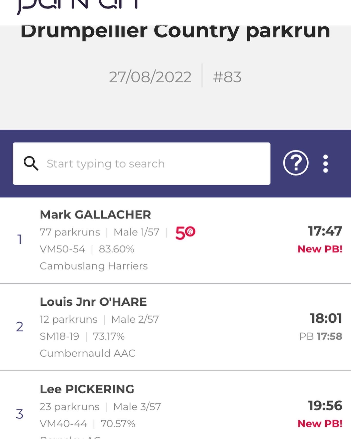 The best laid plans of mice, men and baldy supervets rarely come to fruition though and despite mostly training well it never quite happened. After a bog standard track session, both calves and soleus were really painful and I had to strip it back for a wee bit and ease the block. As each track race came up I had to assess where I was and scratch from them one by one. Since the 3000 itself had me in a field with a couple of Olympians I was never going to go out there unless fully fit, so a 3000, a 5000 and a 1500 all missed as my track season, like last year, came to a premature end. Disappointing, but the thought of multiple laps in spikes on weak calves had me thinking I could end up out long term if I didn’t screw the nut a wee bit. Did manage a wee fitness test over the Drumpellier parkrun trails and finished well for a very rare “first across the line” which was good fun and started building the training up again.