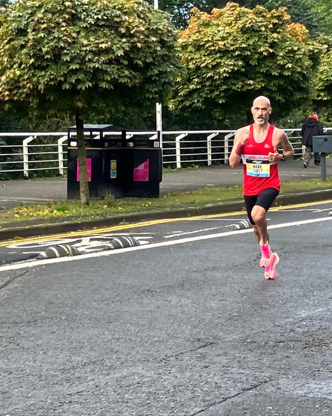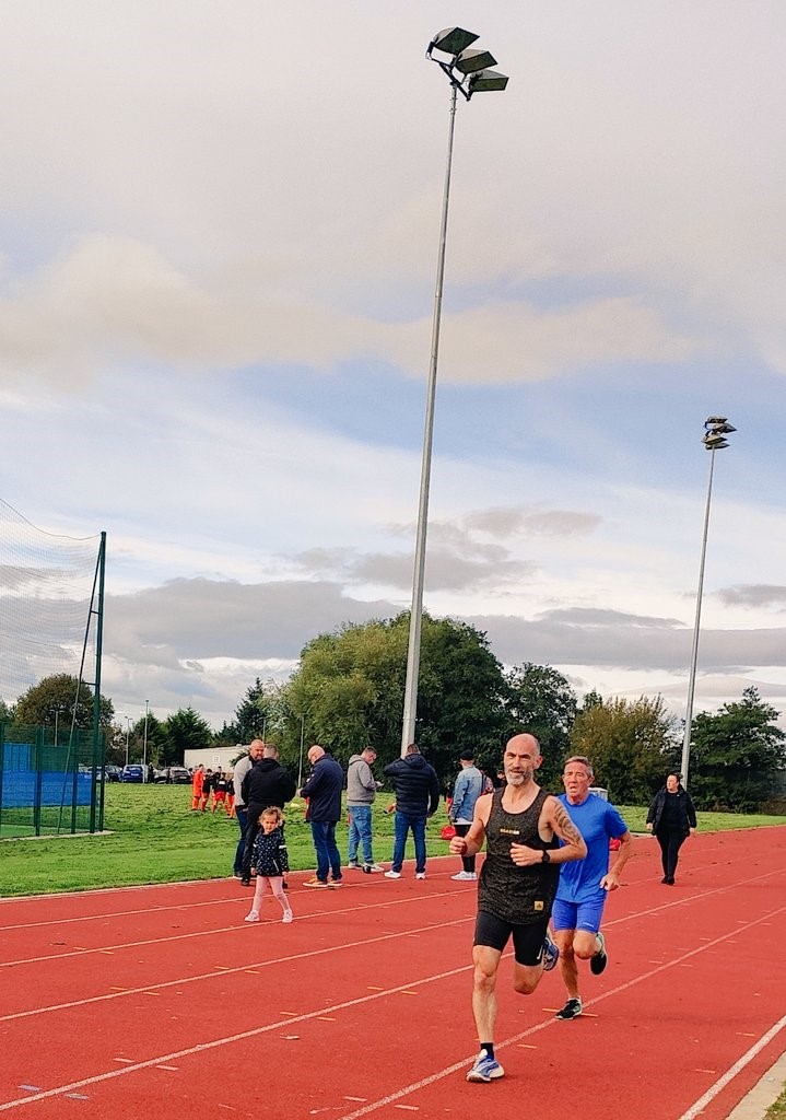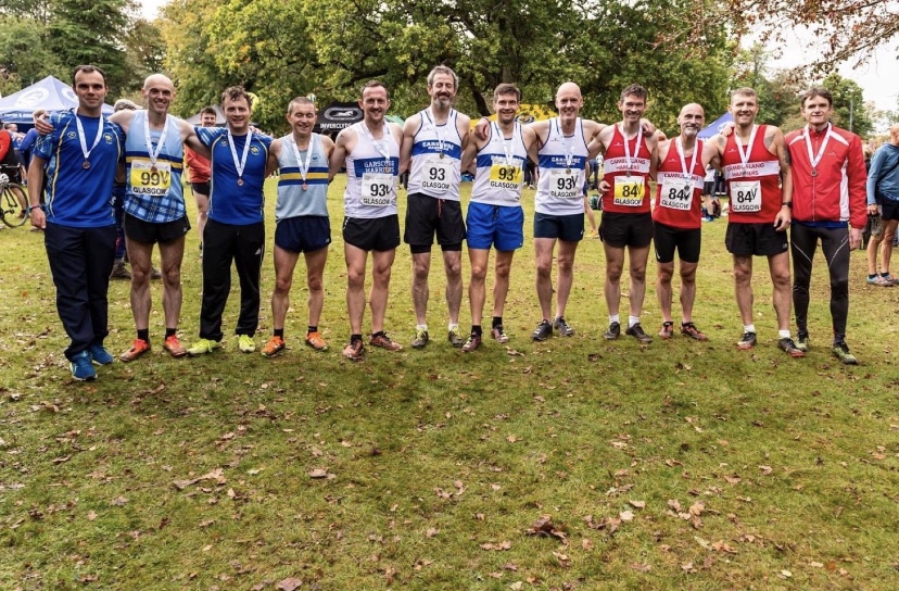 My last blog was just after the Stirling 10k, over a month ago. I had had a decent outing after the calf problems, but took the call the next week to miss the Masters Cross Country trial for the International in Dublin as I felt it was too early to be hammering over uneven ground on dodgy calves. I was looking long term as I was worried that it could potentially put me out for a spell. To be honest even if I was in full fitness do I think I could have placed top 3 in the 50s? Nope, too many racers I respected out there, but was particularly chuffed for my pal Alan who had out muscled me at Stirling and kept his fine form going taking second place amongst an excellent 50s field. His first Scottish vest and well deserved. Whilst they were doing that I was banging out a ks session with Forbesy amongst the weans, walkers and fitba watchers of Bishopbriggs, so the fitness was getting there. The picture was taken by the esteemed podcaster Steven Watt of Young Hearts Run Free fame, was nice to say a hello after listening him on my long run every week.