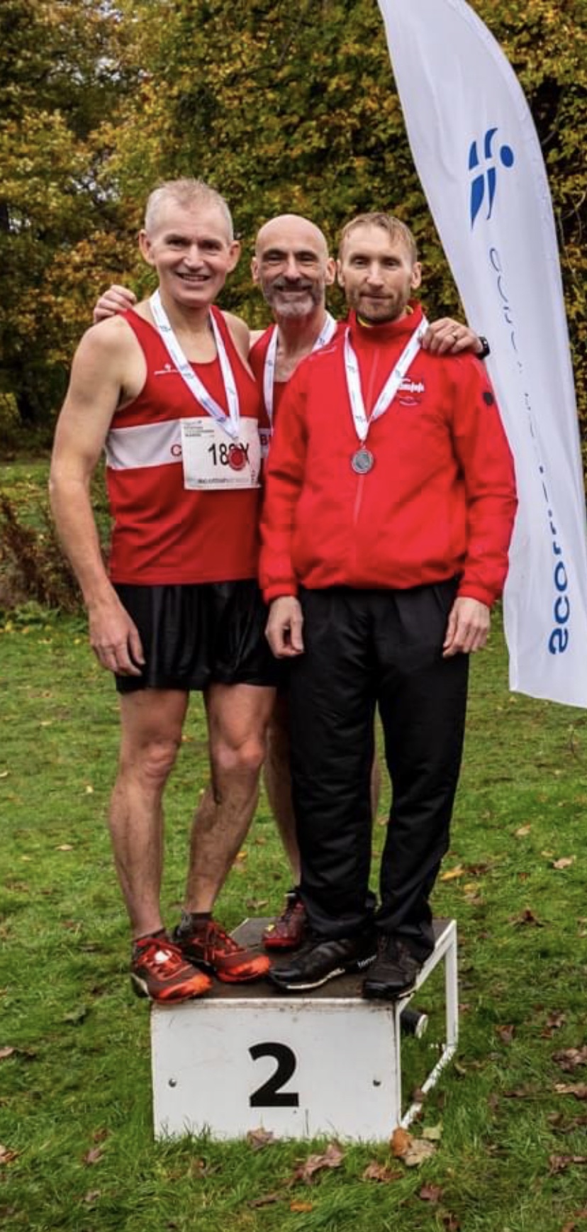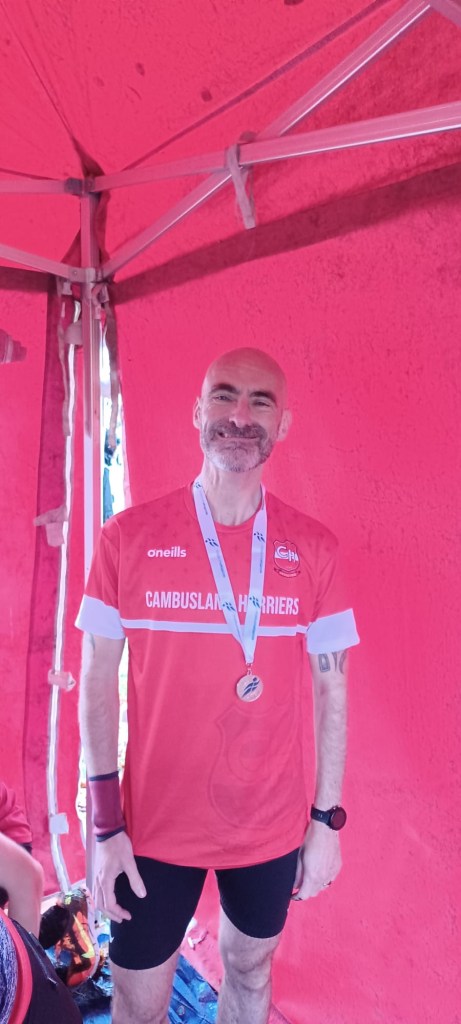 I could see Forbesy ahead and went after him and as I went to overtake him he played the “putting you off game” by falling on his arse. When I say on his arse he took a while to get there, as he seemed to kick like a karate expert then somersault like that lad Whitlock. It was a high scorer both on execution and difficulty to be honest. I had my splits from my previous run here and was disappointed to see that after a k I was 10 or 11 seconds slower than I had been on my last visit. I had been too cautious and in a relay race you just can’t do that. Up the top of the first big climb and ahead of me I could see Shettleston and Corstorphine who I assumed would be right up there, but they were further ahead than I wanted. I tried the best I could, down and up, round and through the swamps, but never really felt I got moving until the last k. Up the hill round the tree then the loop to finish and I am starting to move and catch a little. Sprint hard to the line maybe 5 or 6 seconds behind Corstorphine in 4th place with one leg to go and just felt like I had let the team down, I just hadn’t had the run I thought was in my legs. No excuses, I simply didn’t run well enough. It’s a team event though and Chris on the last leg had an absolute stormer for us. He reeled in Shettleston and Corstorphine, having a great duel with Iain from Corstorphine over the entirety to bring us home in silver. Absolutely amazing. Cumbernauld had led from start to finish and totally deserved their win. On the day I was really annoyed with myself but on reflection even if I had been better it wouldn’t have made any difference. As a team we had done brilliantly, the silver a great achievement. A carousel of emotions over the course of the day.