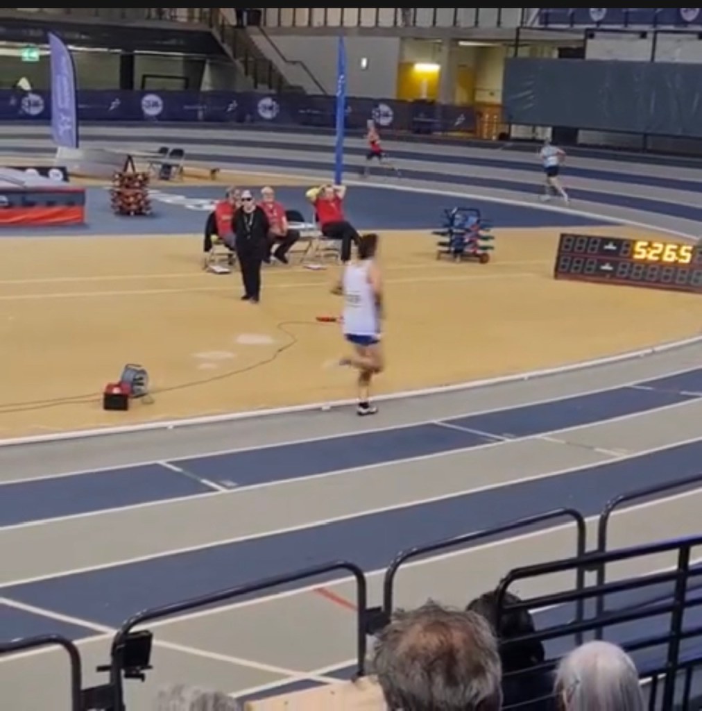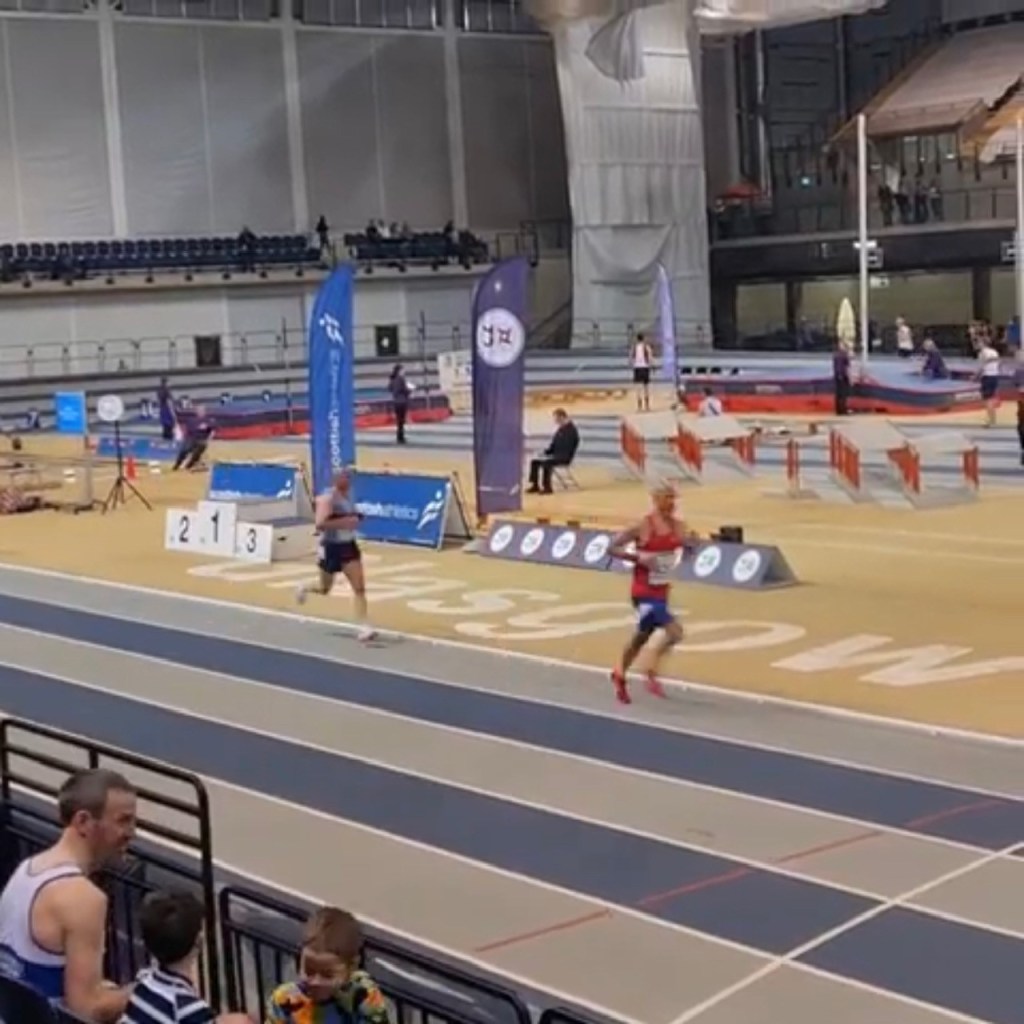 So I decided to run the Scottish Masters 3000m indoors championships. On 3 weeks training. Get out the stupor and see what was in the legs, where I’m coming from. Line in the sand and all that. Do my thing for 3 weeks and see where I can get to. I’d been finding it really difficult but thankfully in the week before it things started picking up a little and I had a much better session at the Emirates. Legs better. Breathing better. Head better. I’d chipped away at the weight too and 5 or 6 pounds over the few weeks making a difference. On the Thursday took myself to EK track at lunch for a solo split 3000, do 2 1500s off a generous 7 min recovery to try and gauge where I was. Hoped to dip under 5 mins which meant low 10s over 3000 would be a possibility and ran a boringly consistent 4.55.8 and 4.55.9, but was utterly dead on my feet, the thought of trying to combine two of them together made me want to take up bowls instead. They have nice slacks. And jackets. There was to be no pressure though, of the 9 finalists the top three picked themselves and I wasn’t going to be near them, I reckoned 9.40 would be needed for a medal. There would be others around the mid to low 10s too so I’d get a race, and try and race myself back to fitness. Keep the heid, although to be honest I really was concerned about my endurance.