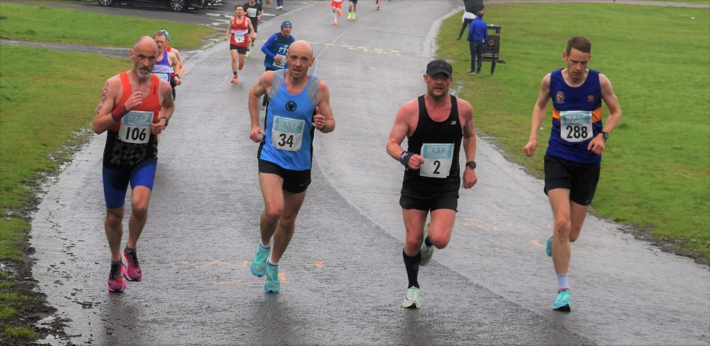 A few folk, including Mark King from my own club and Alan Moss who had had a storming year last year, came past us here, obviously appalled by the poor patter. I can’t blame them. Down the hill they all strode through Glennie Boulevard as I settled into my rhythm. All good.